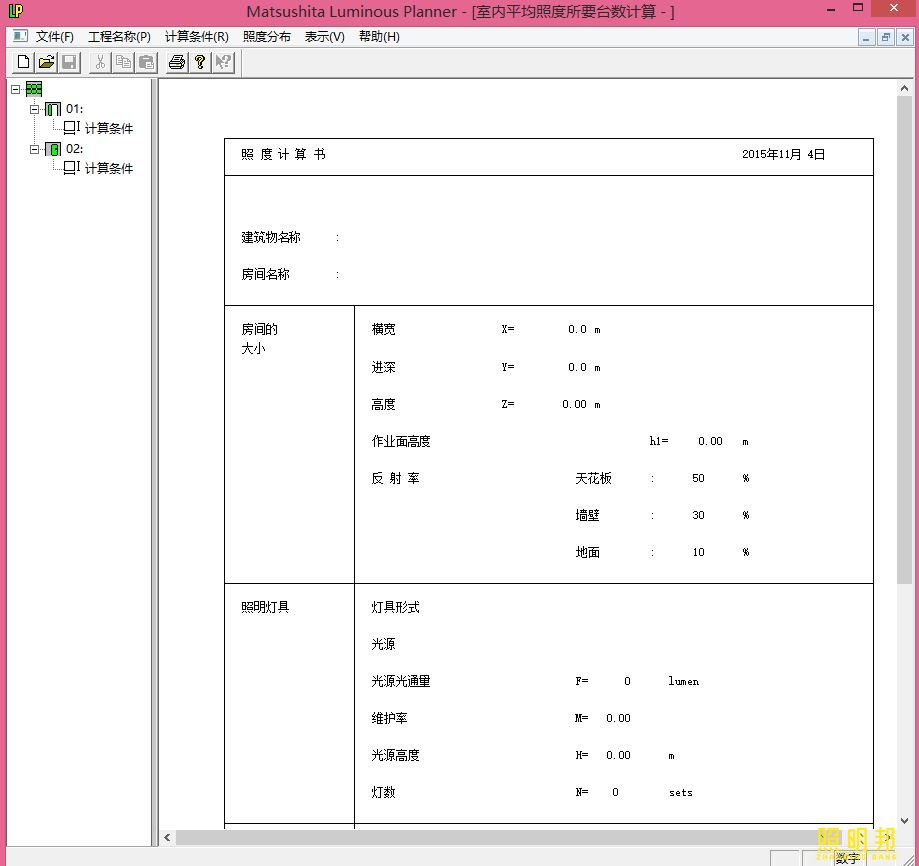 照明设计必备软件——松下照度计算软件主要用于照度计算: