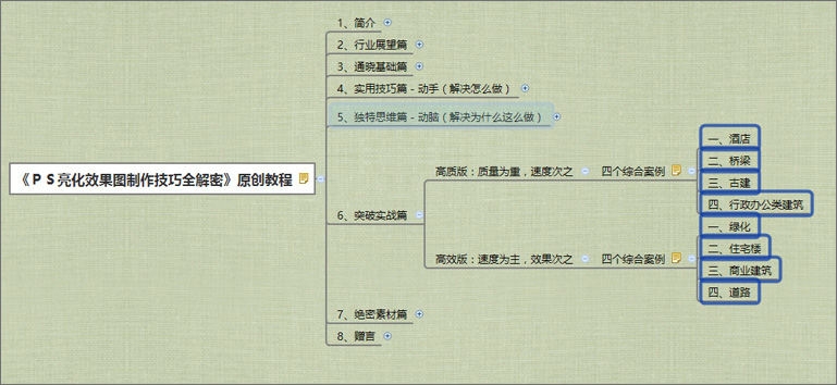 教程虽然取名叫《PS亮化效果图设计技巧全解密》,但重点却不仅仅是在教授技巧上,而是提出了解决如何学习亮化效果图的整套的思维体系。